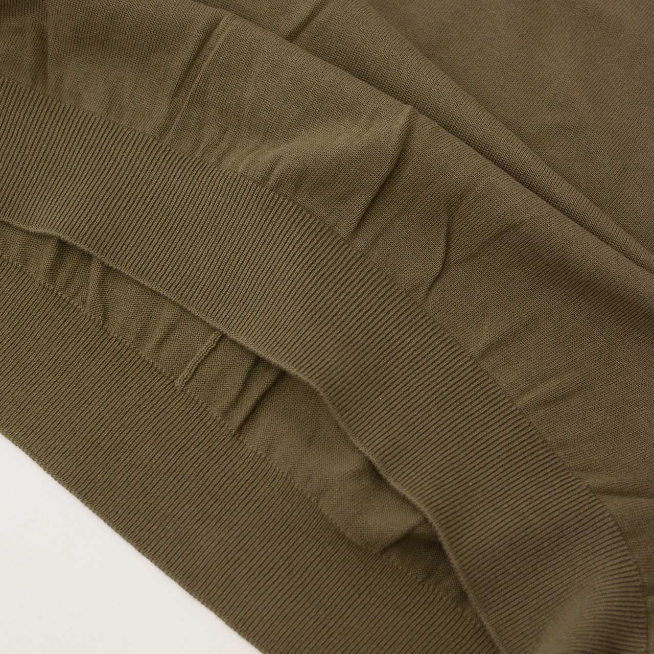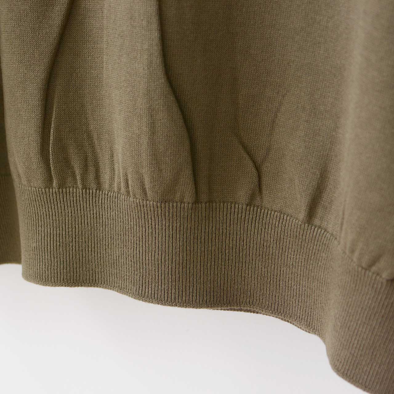コットン100% 14Gのハイゲージ糸をホールガーメント縫製することで、 縫い合わせが無くストレッチ性も高く、ストレスフリーな着心地。