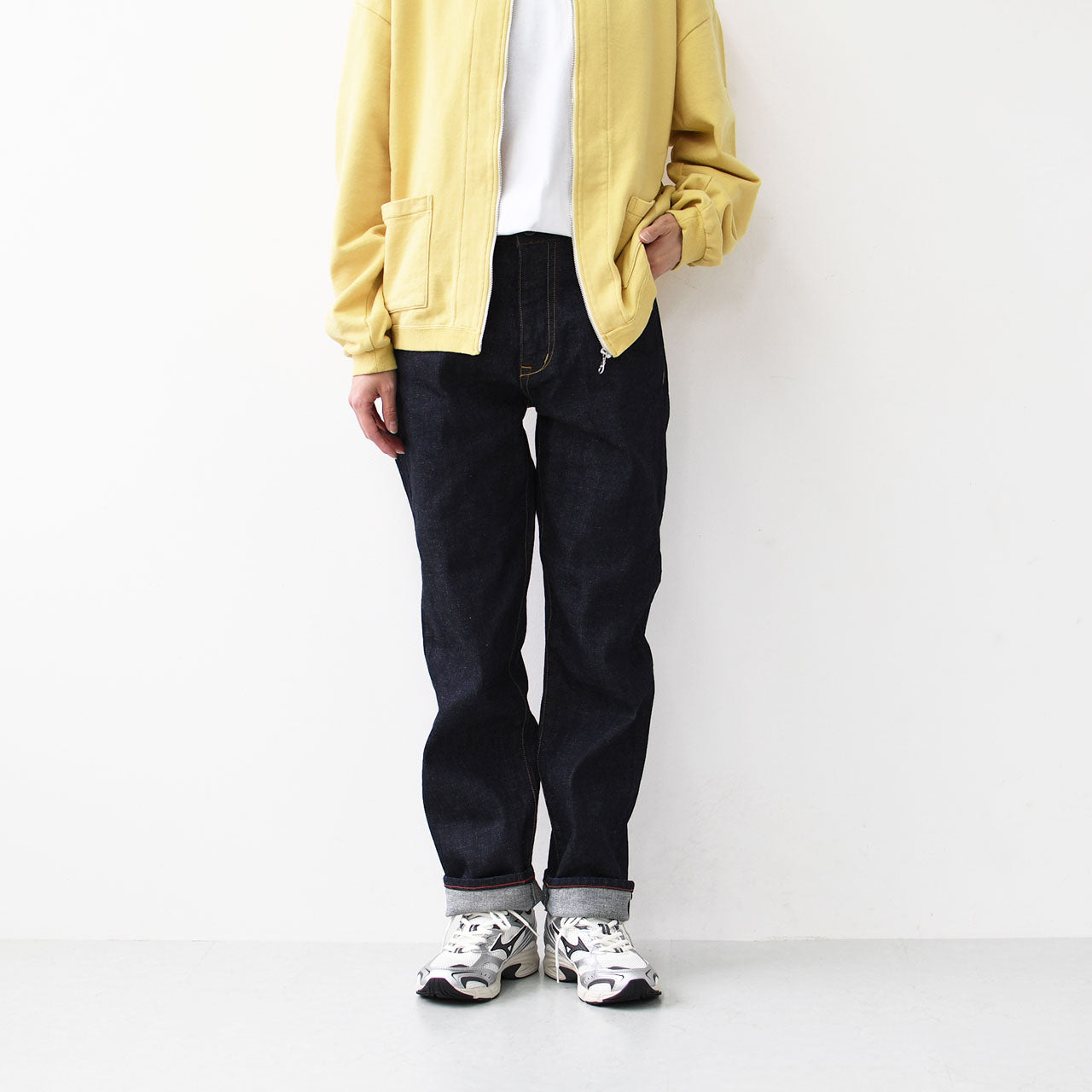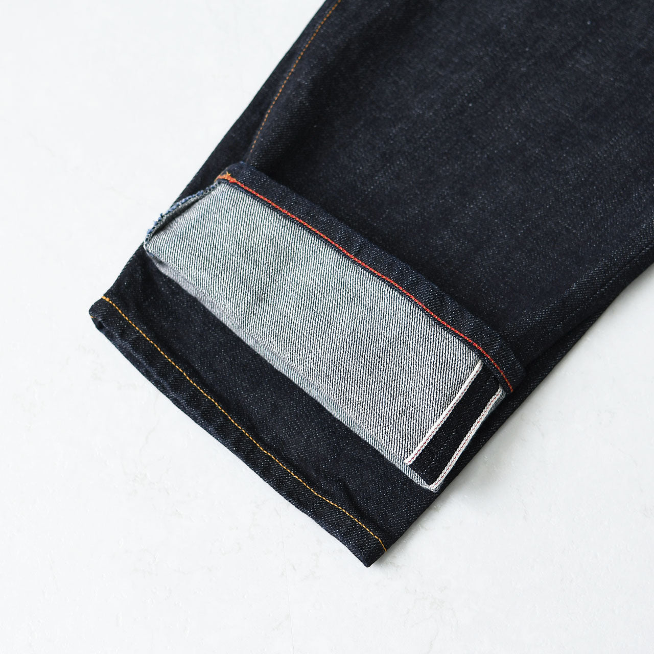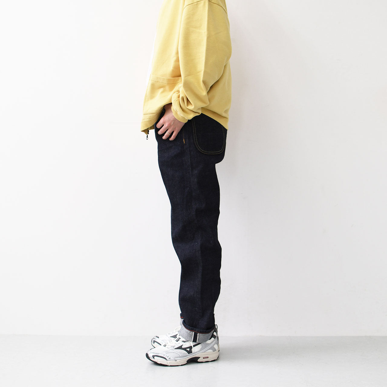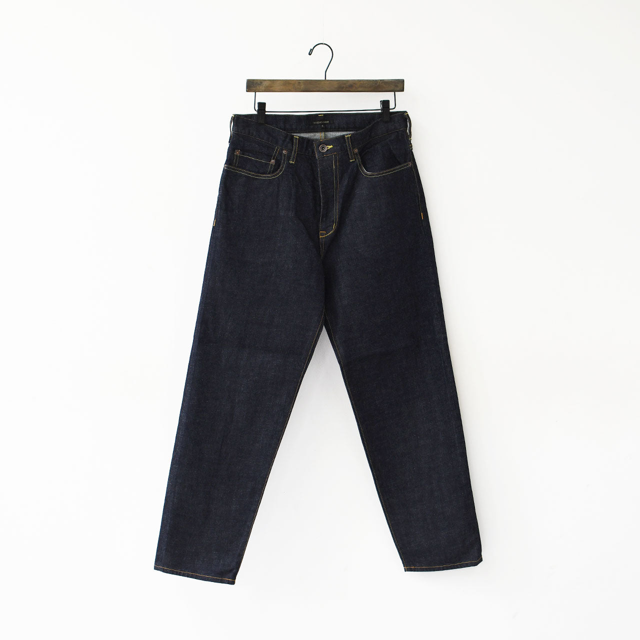 旧式力織機で丁寧に織り上げられたセルビッチストレッチデニムを使用した、ルーズシルエットのデニムパンツ。