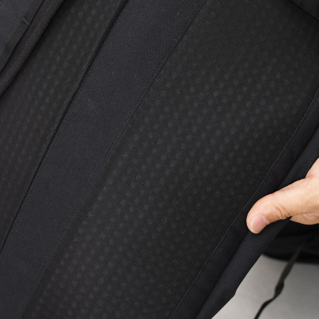 バックパネルとショルダーストラップ:9.4オンス・リサイクル・ポリエステル100%のエアメッシュ。本体と裏地Aはブルーサインの認証済み。フェアトレード・サーティファイドの工場で製造