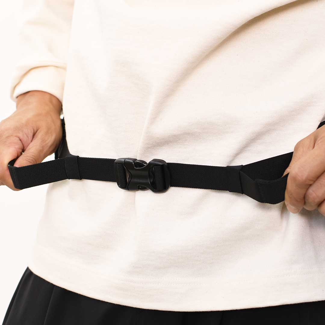 内側に給水パック用スリーブを備え、ショルダーストラップの中間に施した小穴にチューブを通せば左右どちらの肩にも対応。両脇のポケットにはフルサイズのウォーターボトルを収納可能