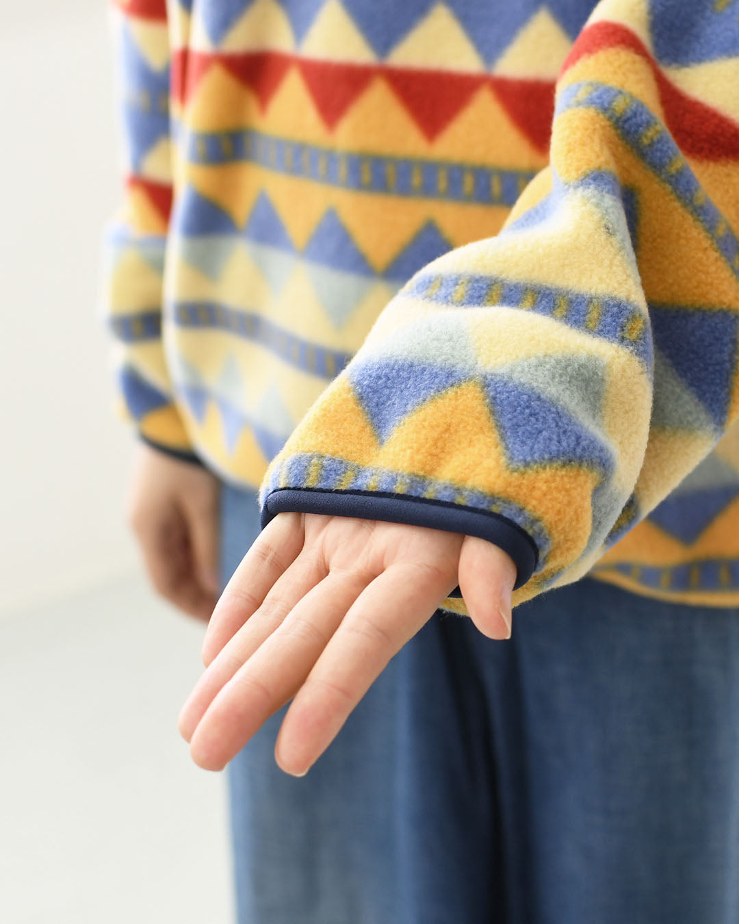 袖口と裾は伸縮性の縁取り付き