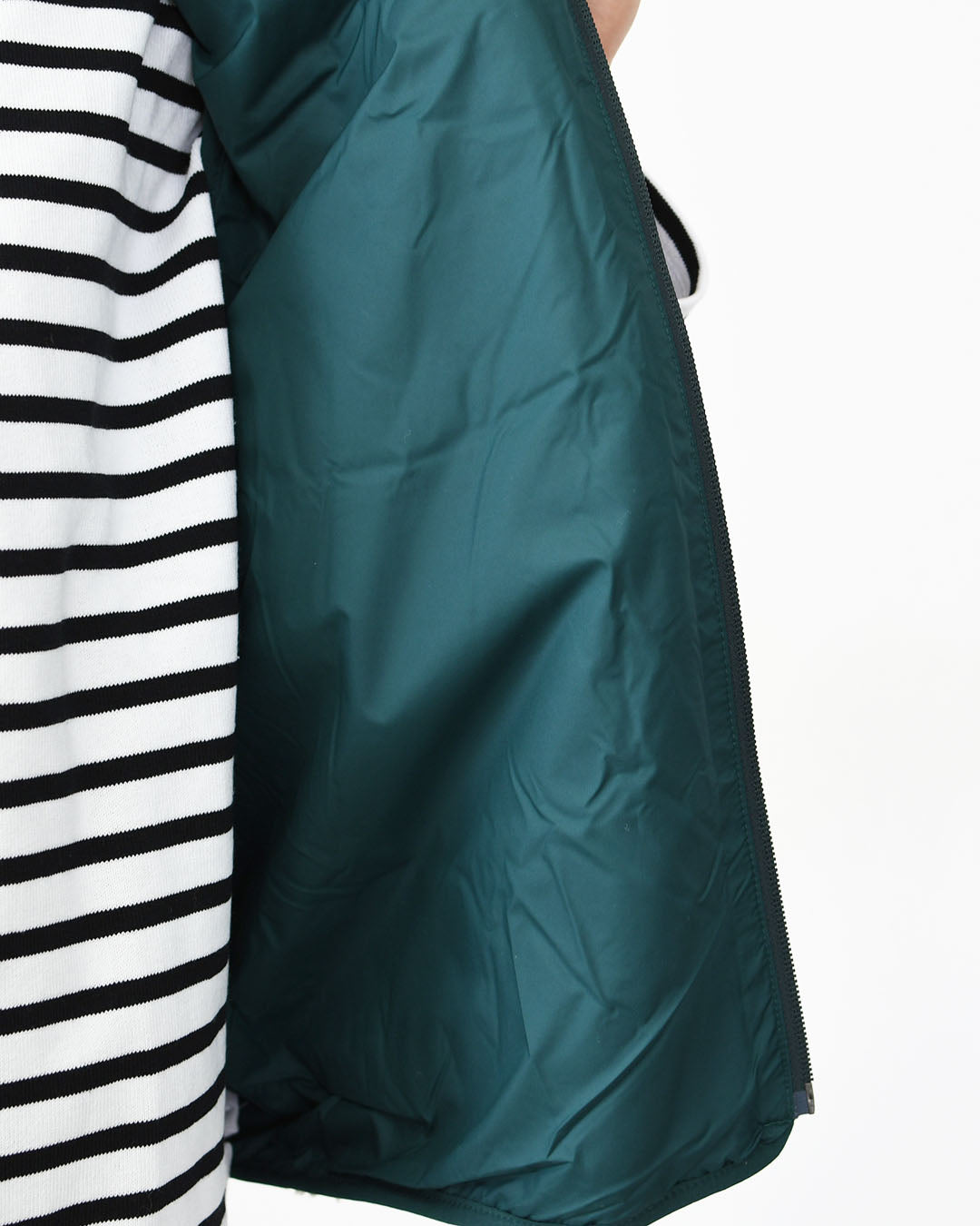 丈夫なネットプラス・ポストコンシューマー リサイクル・ナイロン100%のファイユを襟の外側と左胸のポケットに使用