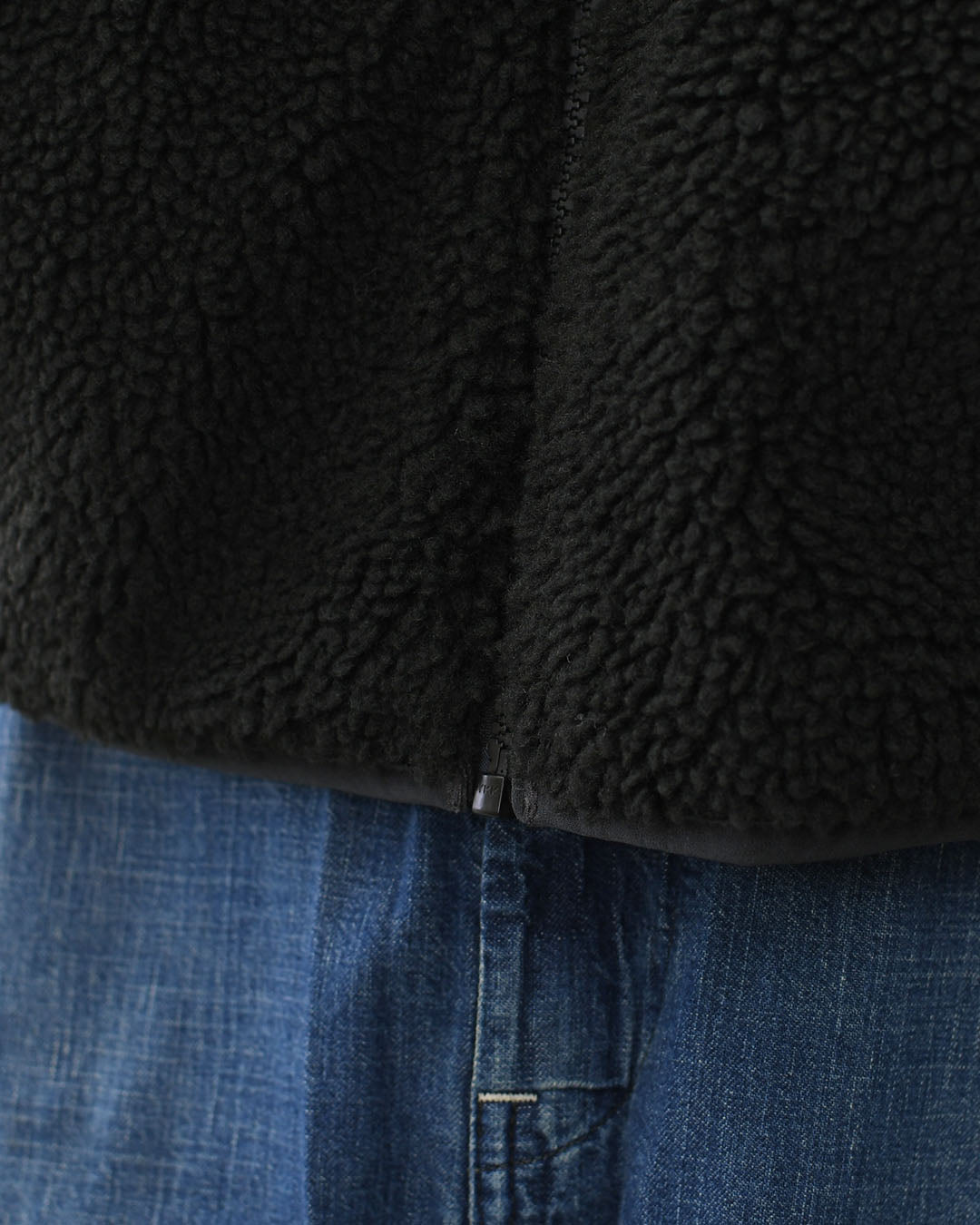 シェルの裏面には温かく快適なリサイクル・ポリエステルの6ミリ厚パイル・フリースを使用。両面にドロップイン型ハンドポケット付き