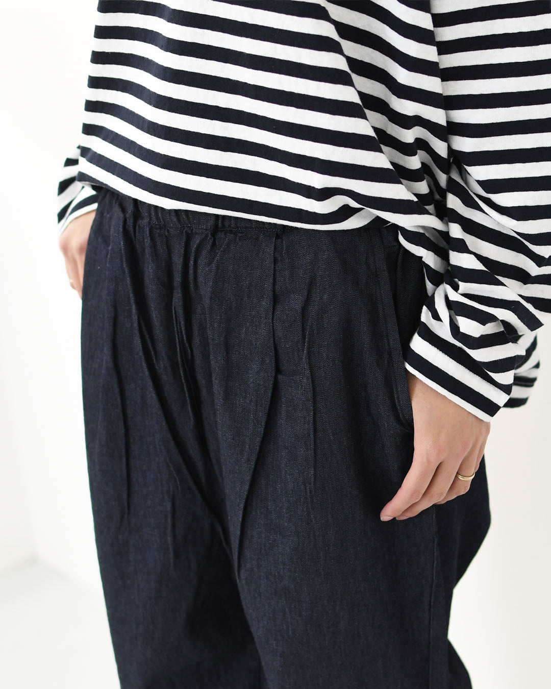 腰回りがすっきりと見えるワンタック仕様です。