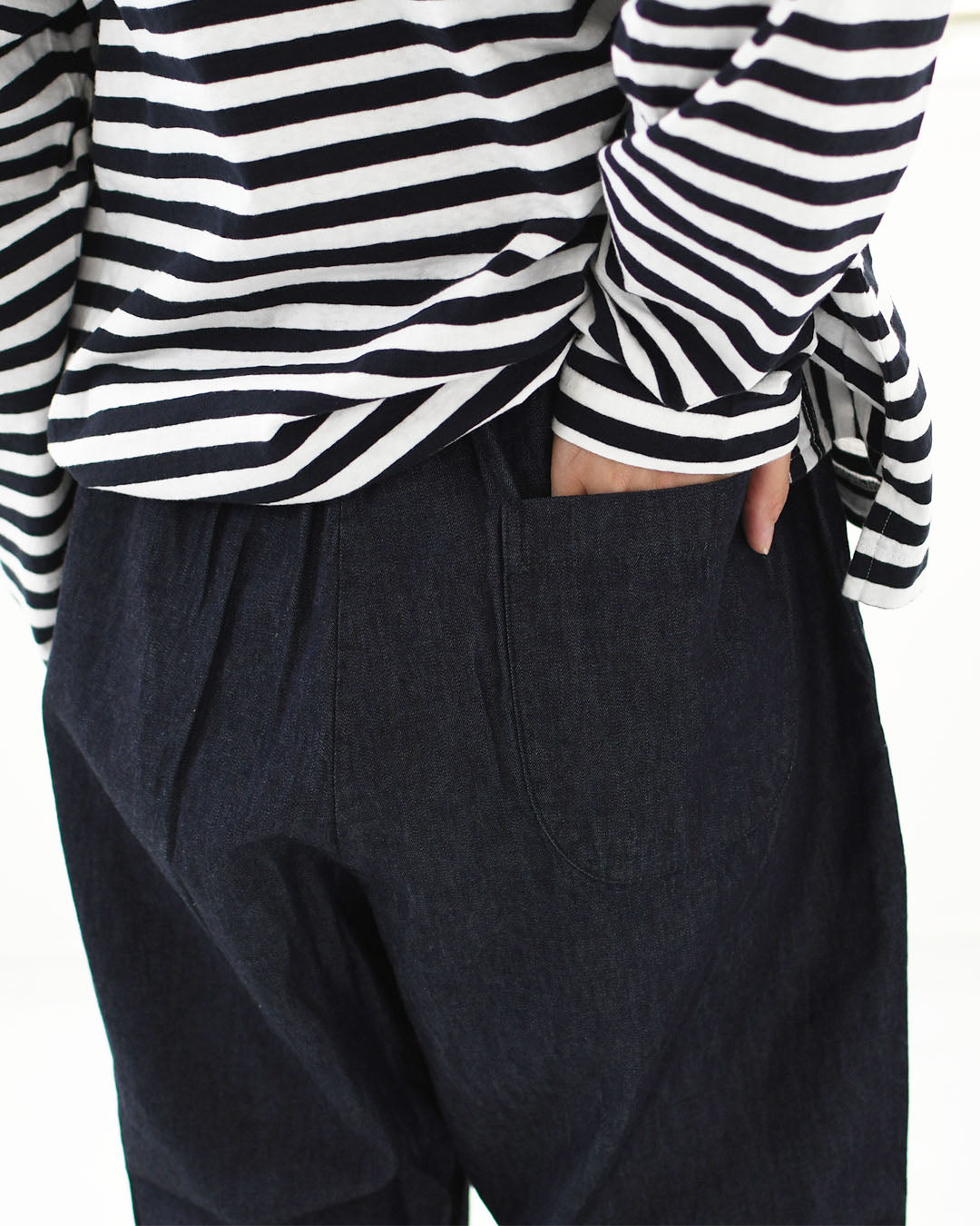 裾にかけてテーパードがかかりすっきりとしたシルエットです。