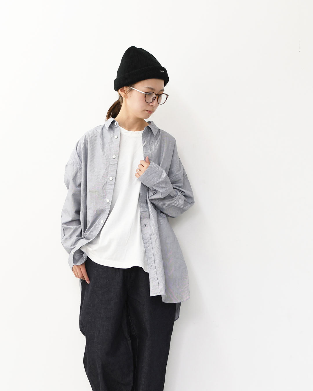 40/1ブロードストライプ レギュラーカラービッグシャツ [P80652]