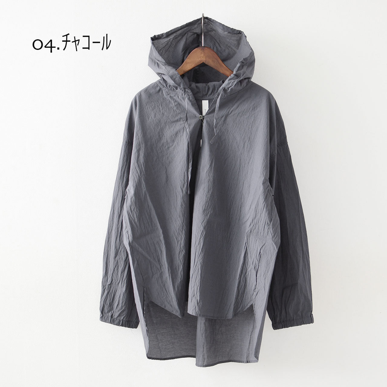 フード付きのデザインが程よいカジュアル感を与え、日常のコーディネートにさりげなくアクセントを加えてくれます。