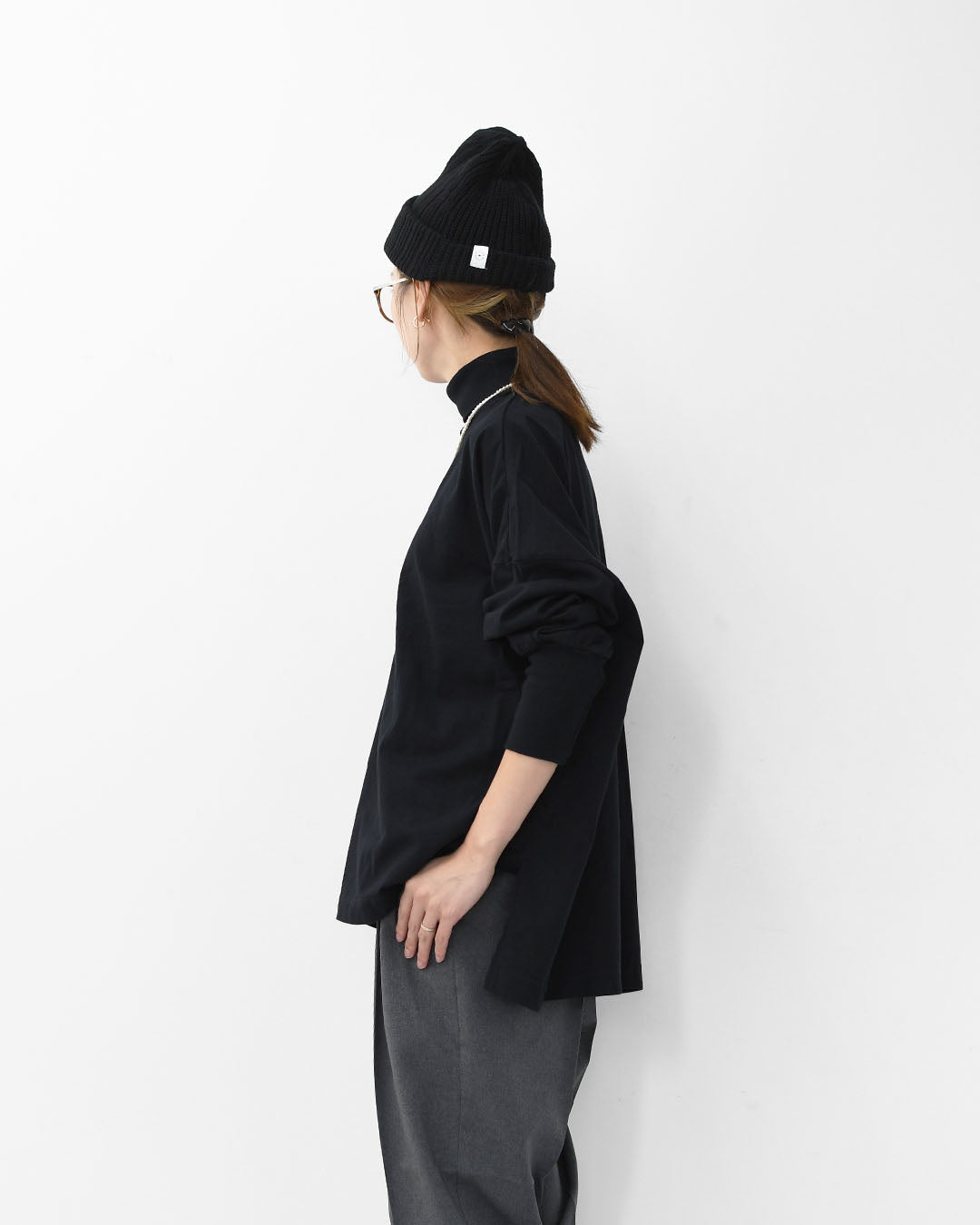 ちくちく感のない綿100%のタートルネックは1枚あると重宝します。