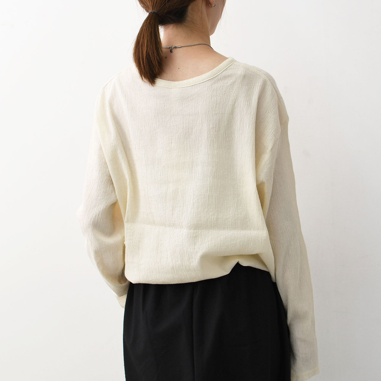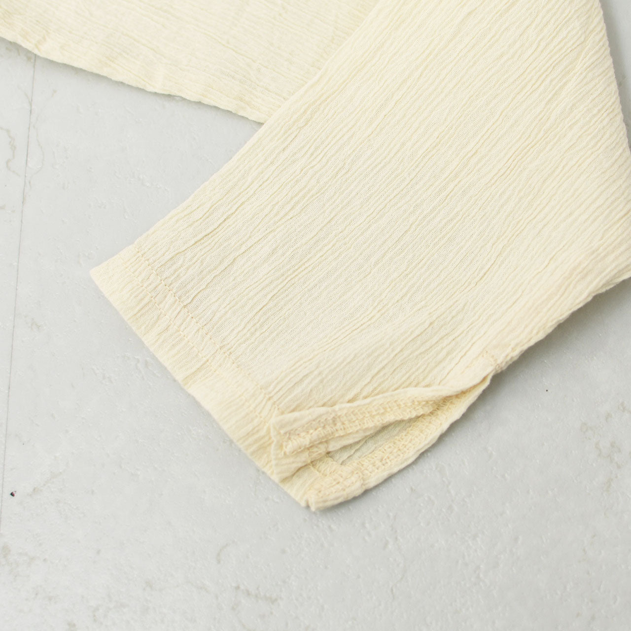 極細のコットン糸で織り上げたクレープ素材は、表面に自然なシボ感(楊柳)を持たせた、