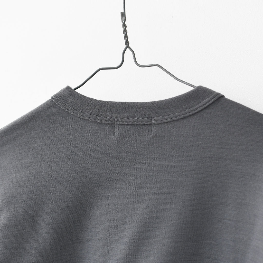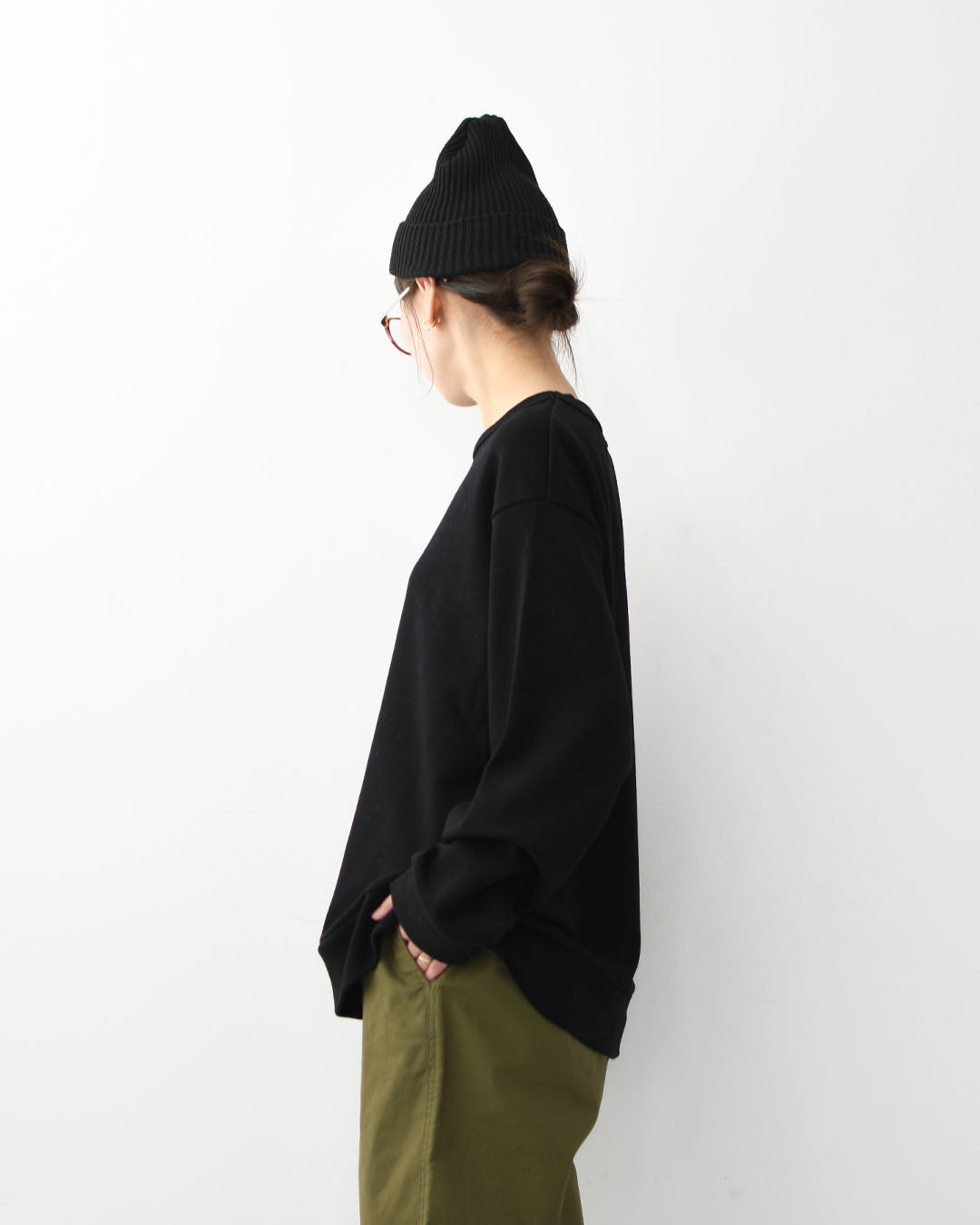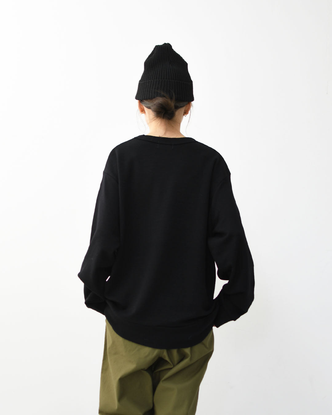 素材を生かすためにシンプルなデザインに留めたクルーネックです。