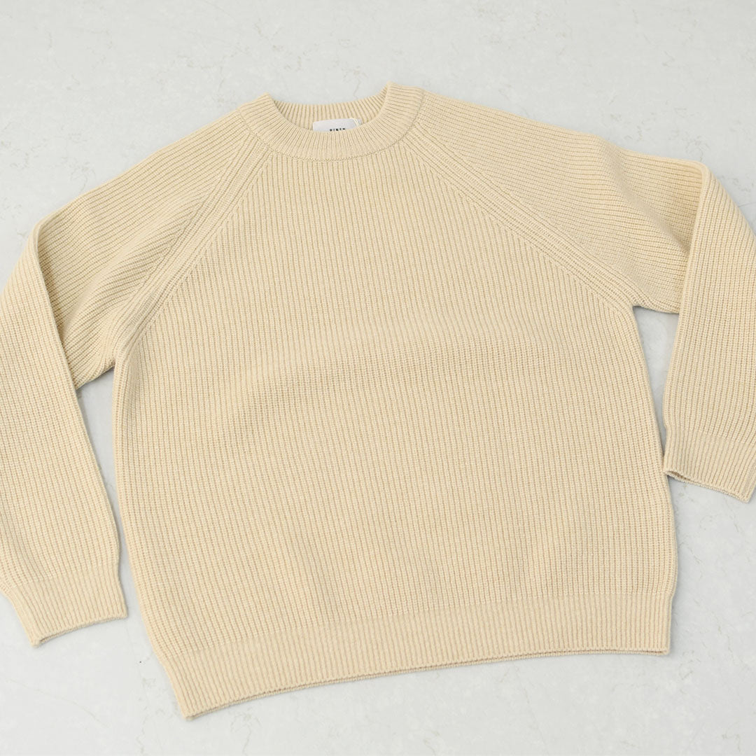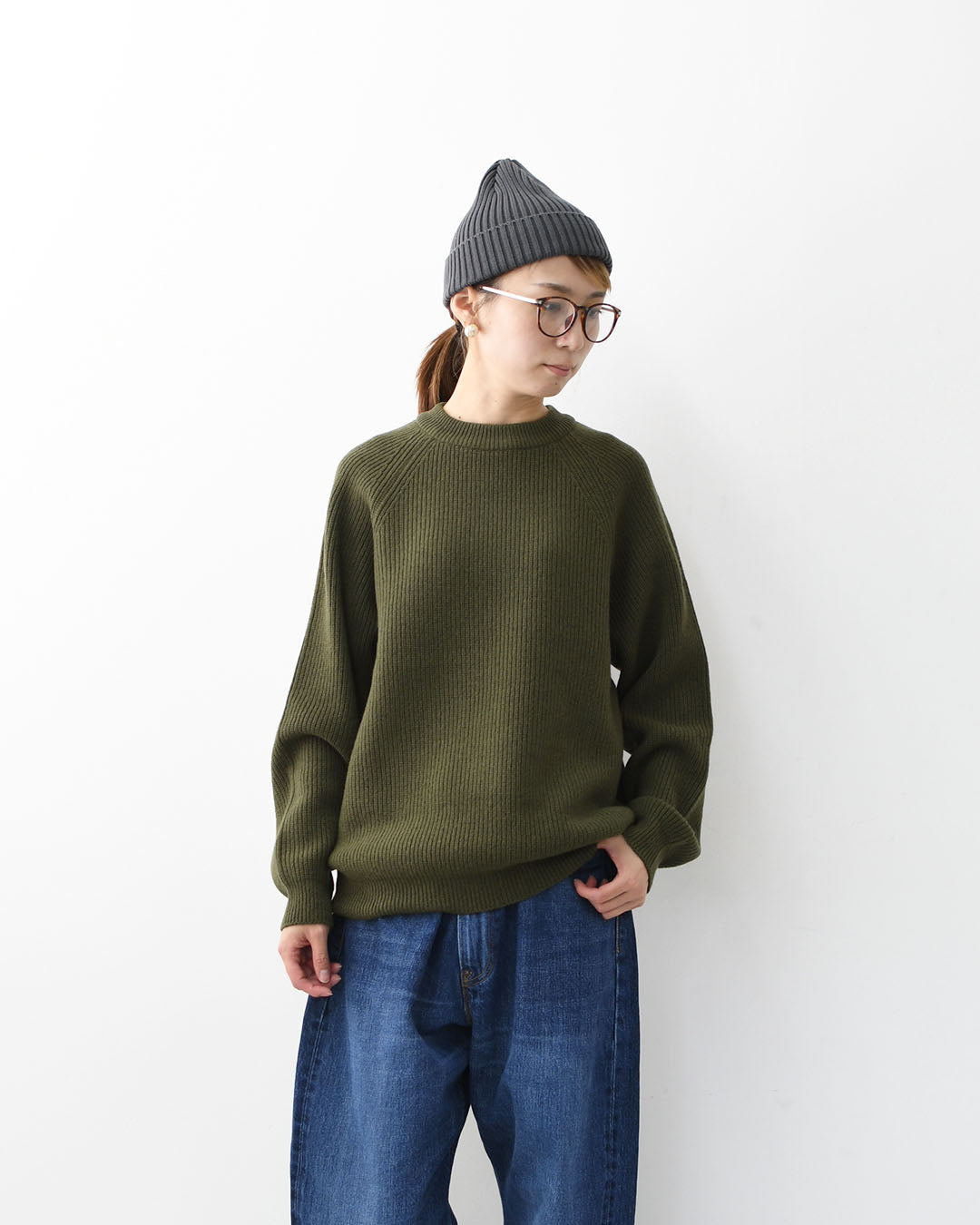 上質なウール糸をふっくらと編み立てた、あぜ編みのクルーネックニット。