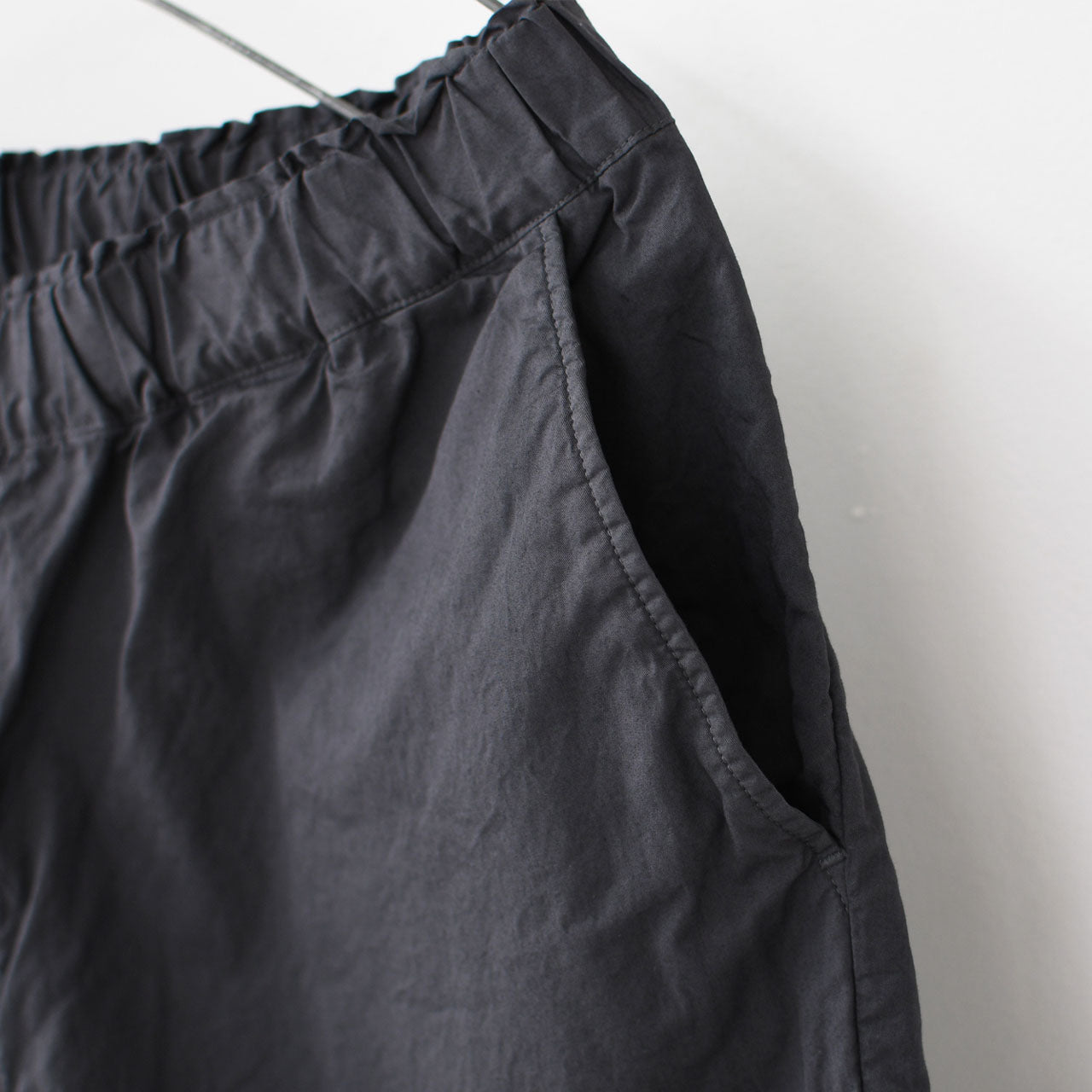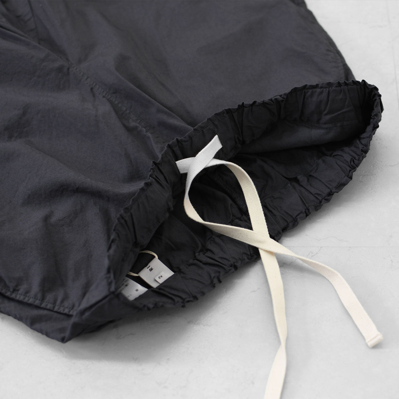 裾ヒモを絞らずでも履けるパンツなので、お好みのシルエットでお楽しみいただける一枚です。