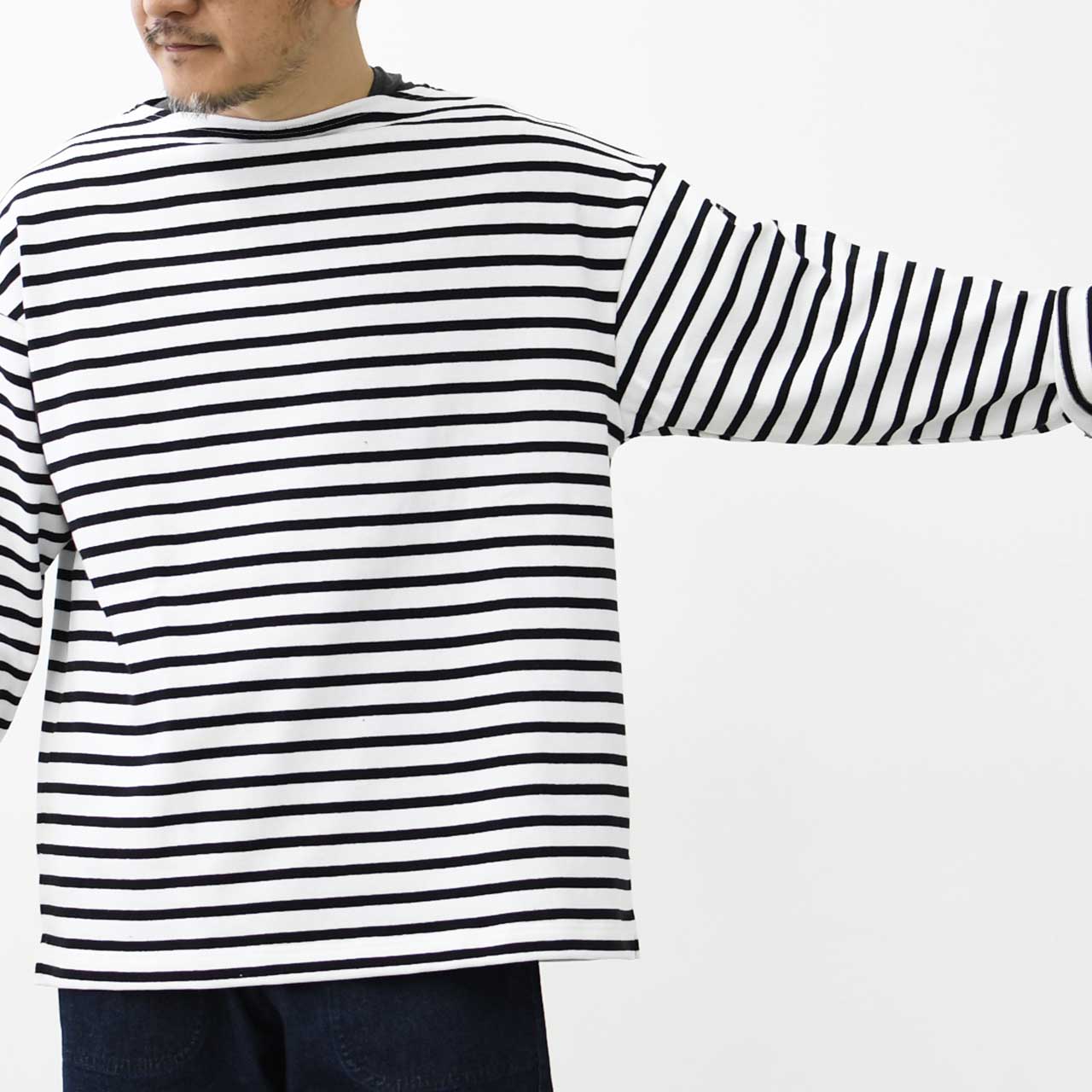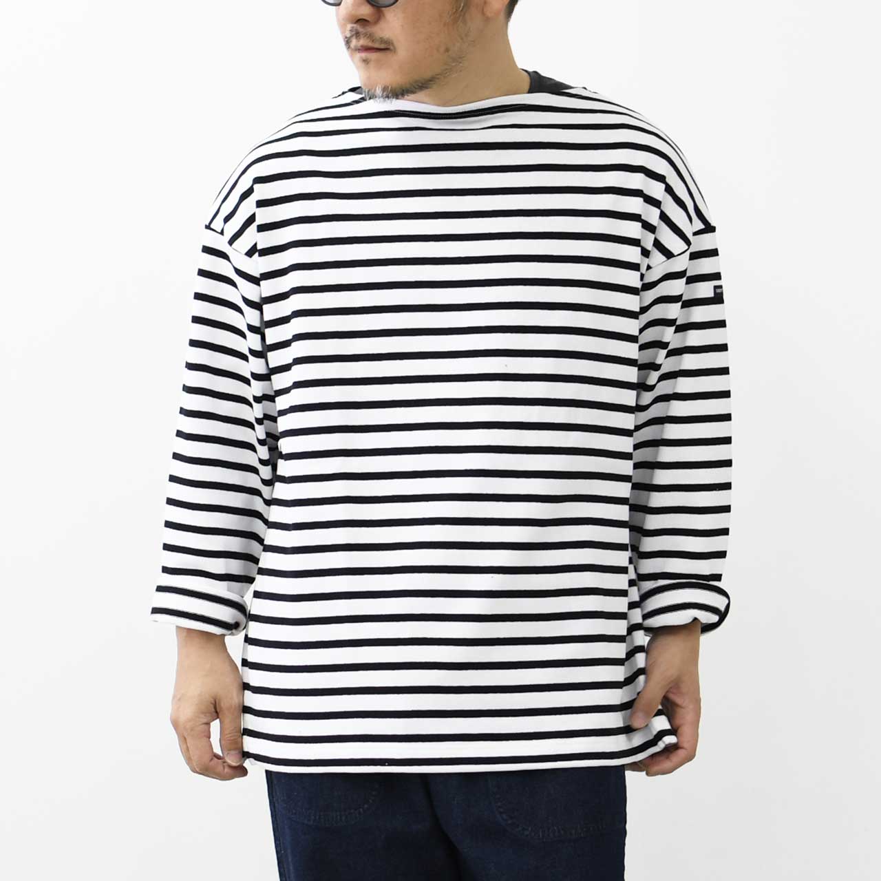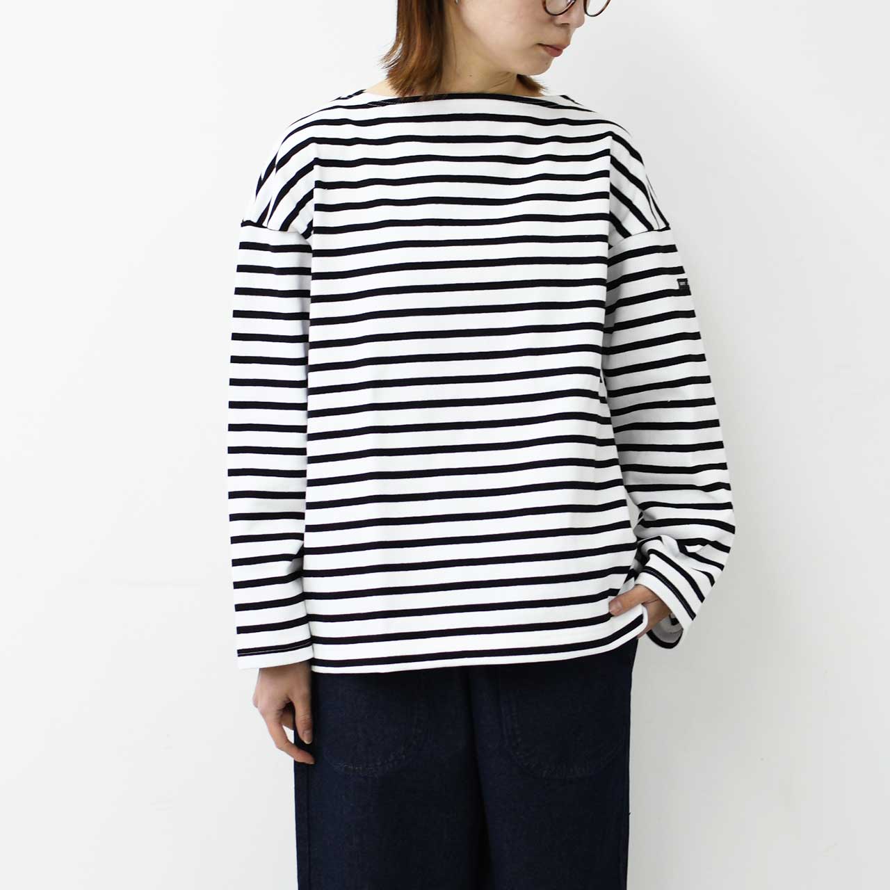 20JC OUES LOOSE BORDERは、その名の通りルーズなシルエットが特徴の一枚です。 OUESSANTをベースとし、身幅と袖幅にゆとりをもたせた着心地のよいデザインです。
