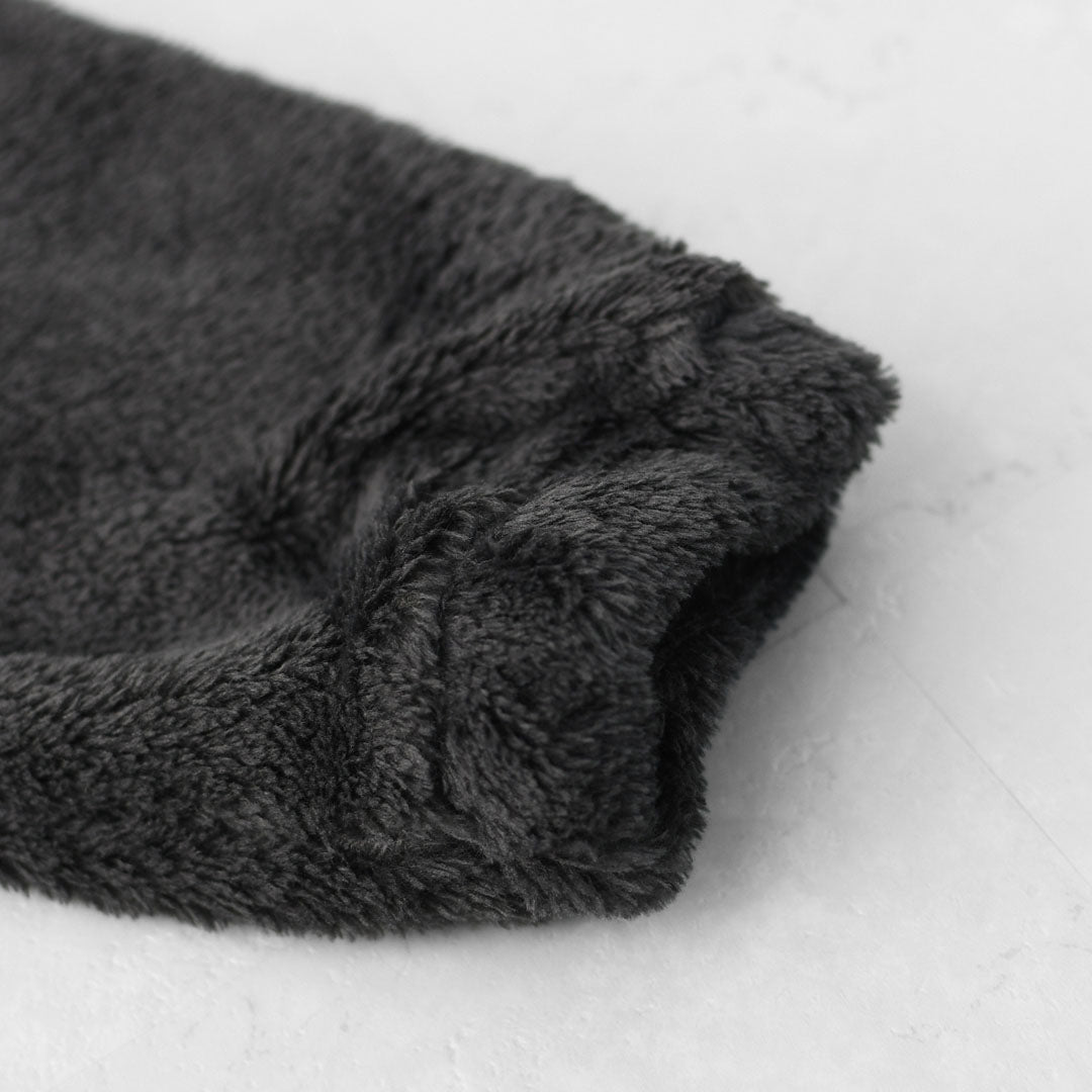 毛足の長いフリース素材が空気をたっぷりと含み、あたたかさと柔らかさを両立しています。