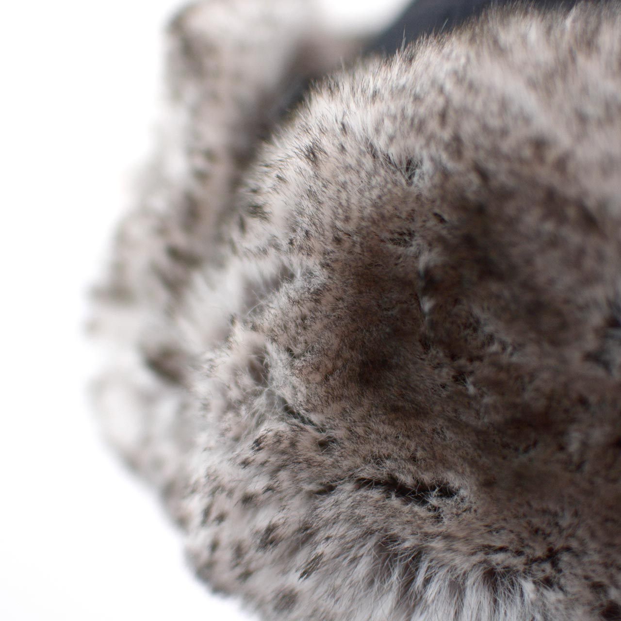 つば裏と耳当て部分のポリエステル素材のファーは、リアルファーのような色合いと肌触り。