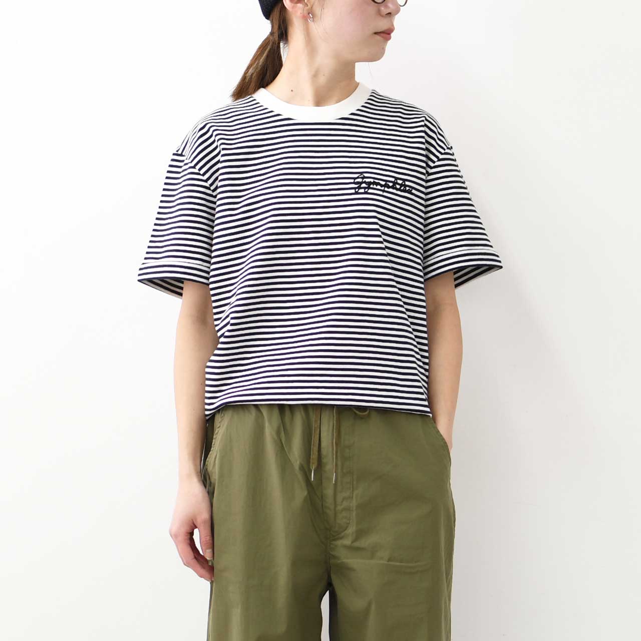 シンプルながらもアクセントとなるロゴ刺繍が特徴的な一枚。