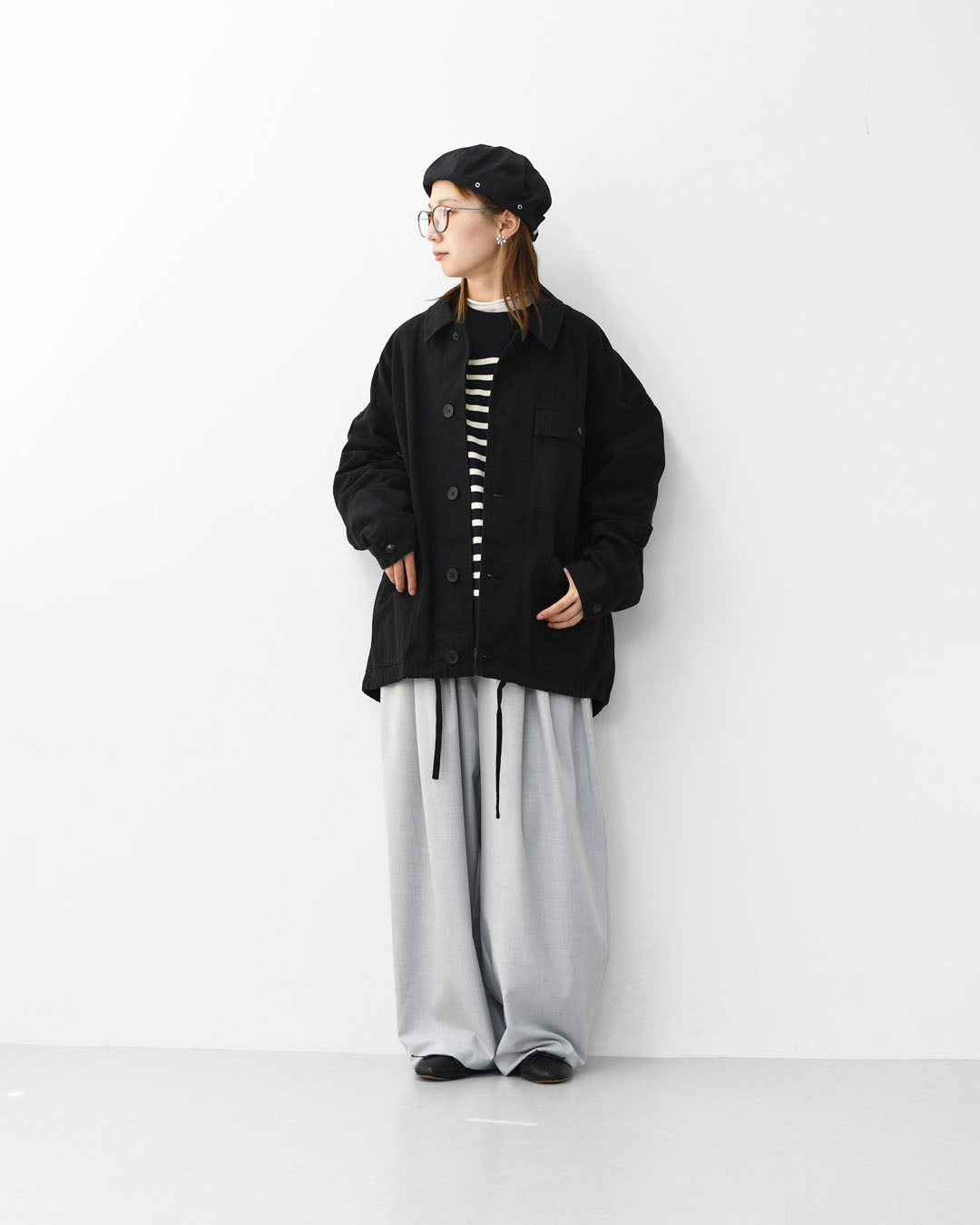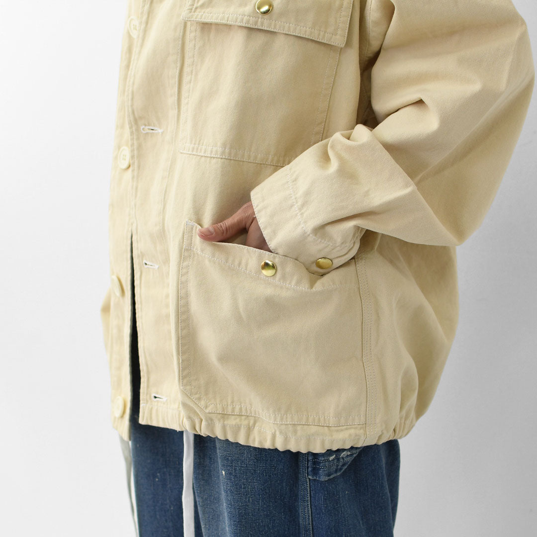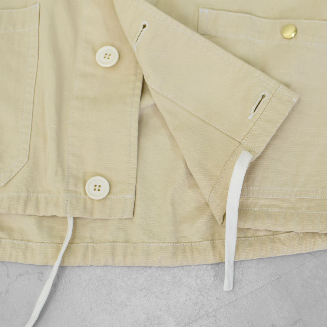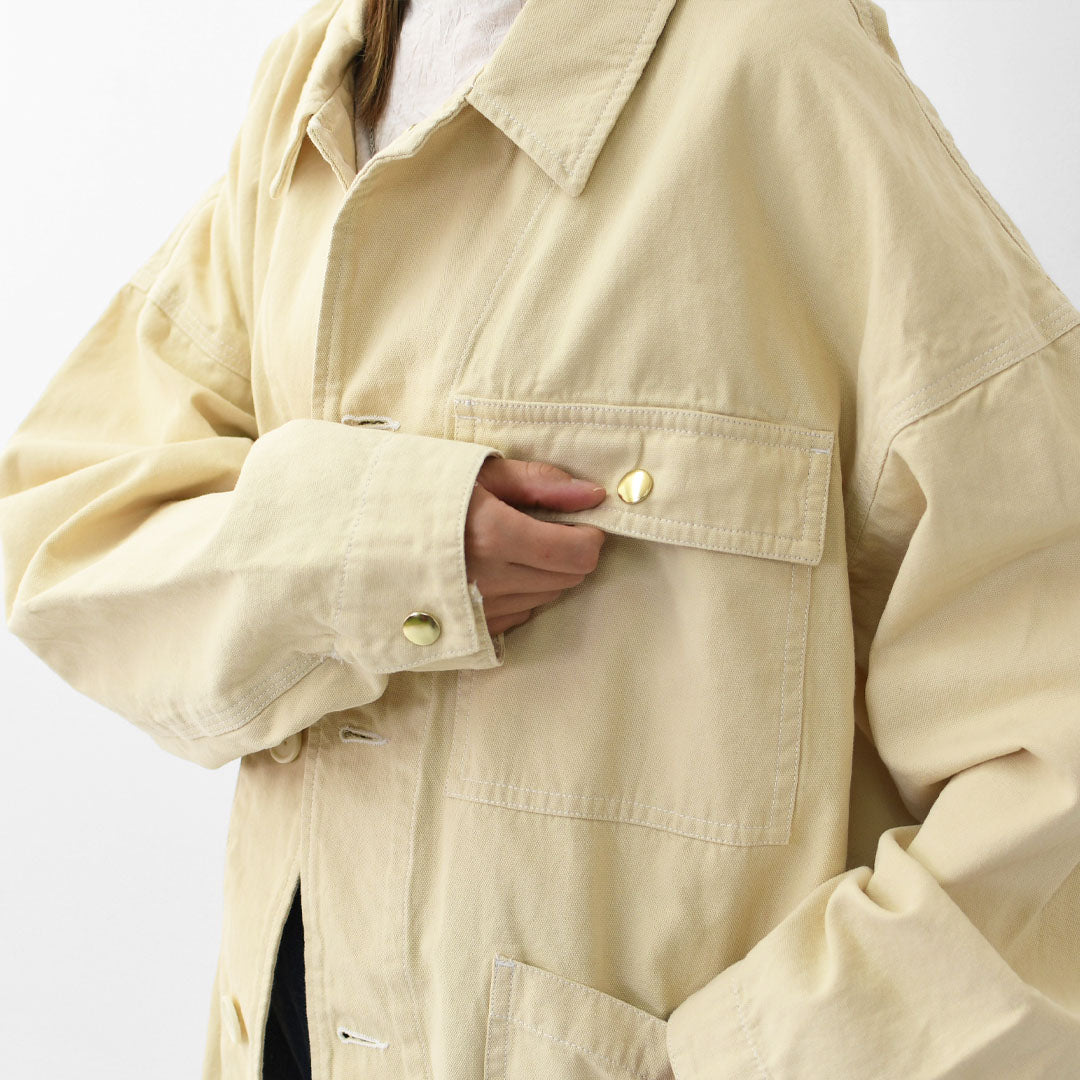 ワークジャケットのルーツを感じさせるカバーオールを、程よいショート丈で女性らしくアップデート。