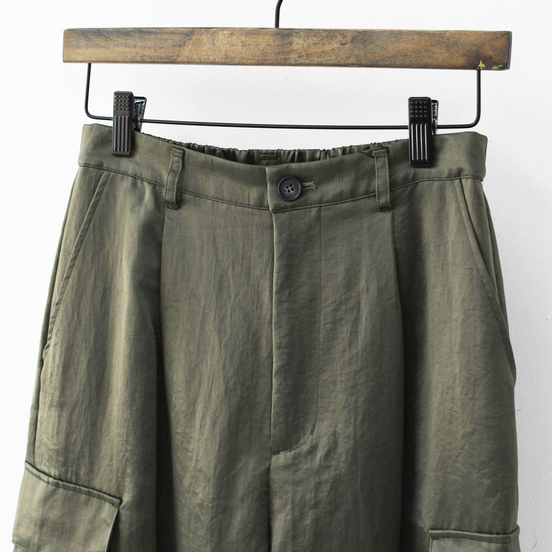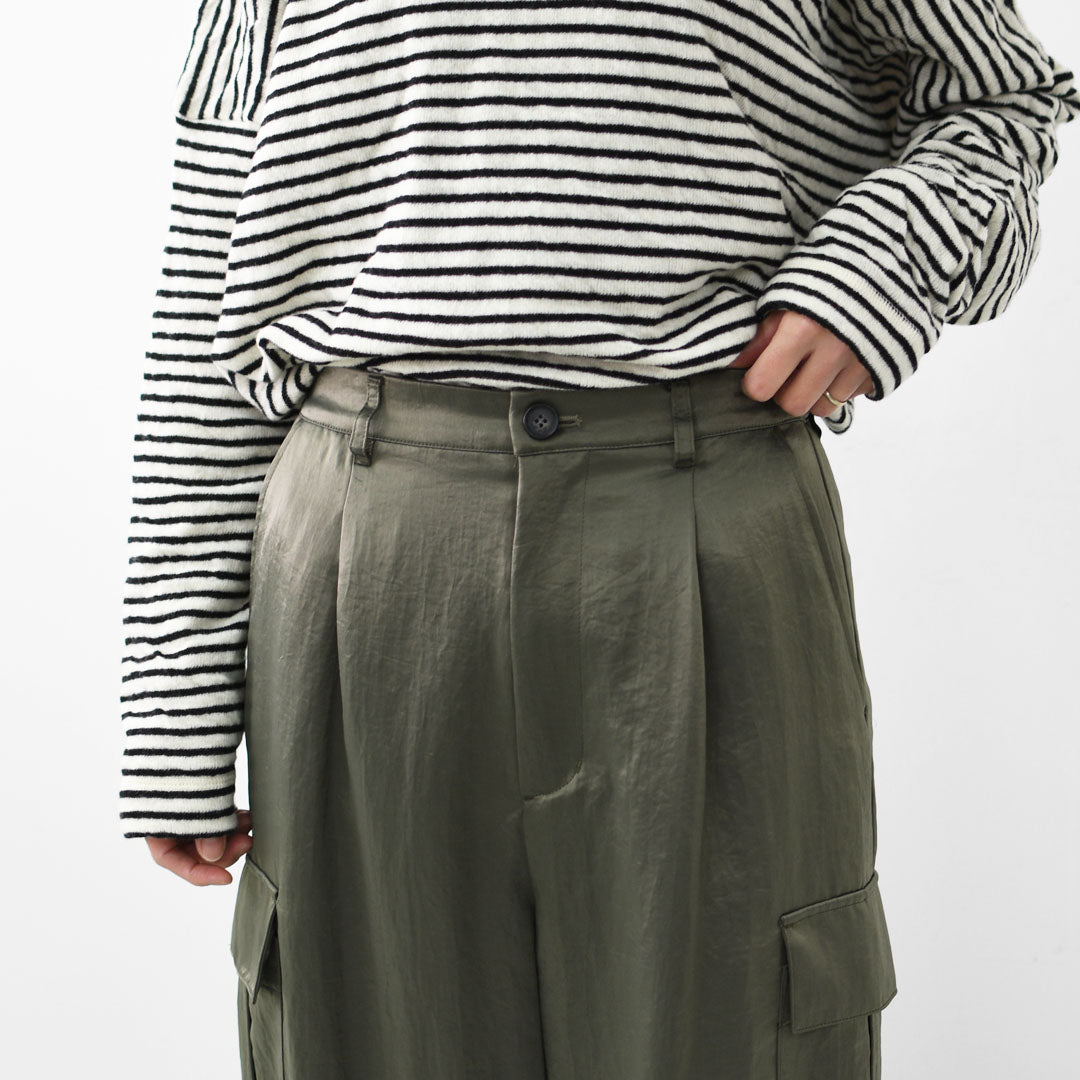 ツヤ感と落ち感のある素材が、カジュアルなカーゴデザインに女性らしさをプラスしてくれます。
