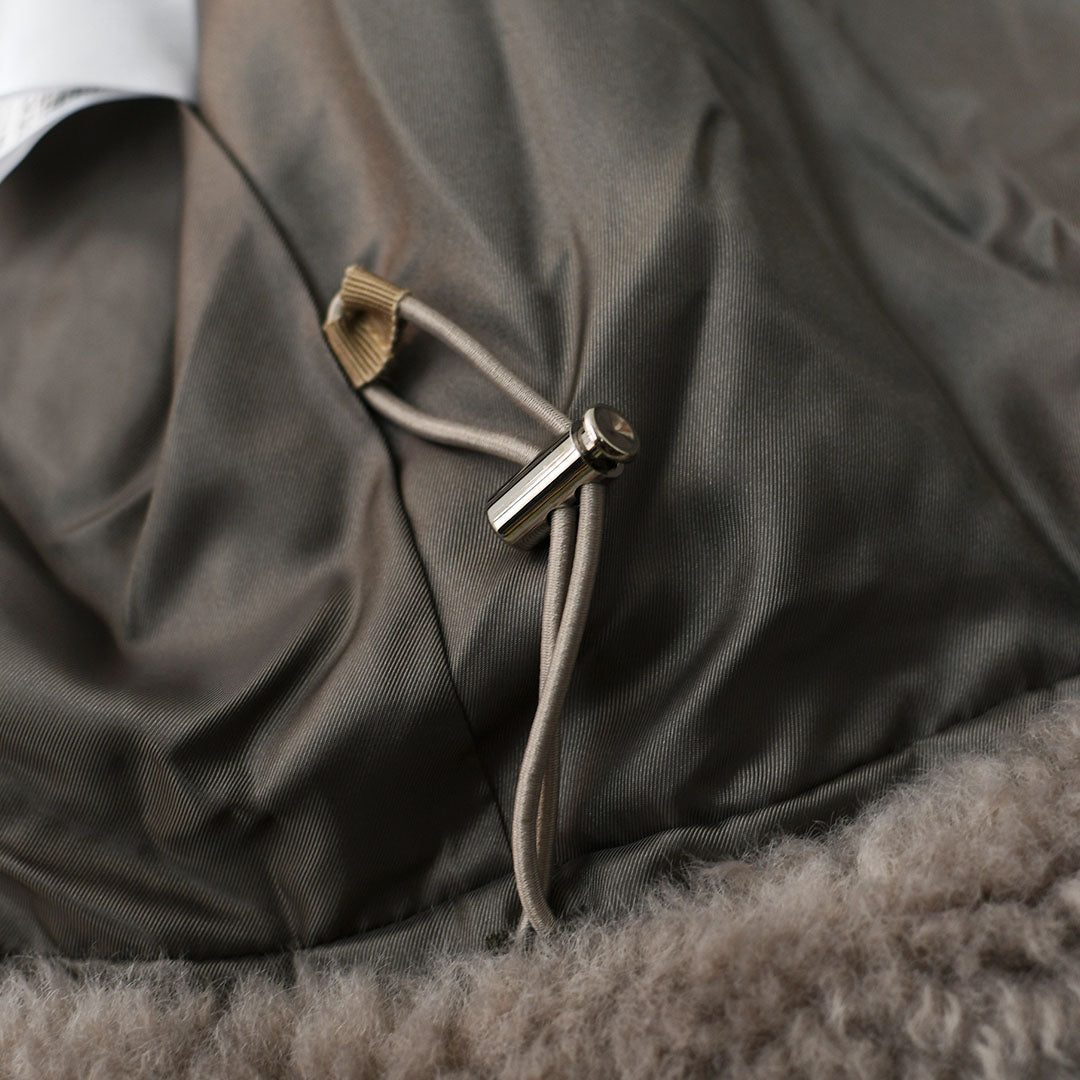 裾の内側にはドローコードを配し、スタイリングに合わせて丸みのあるシルエットに調整可能。