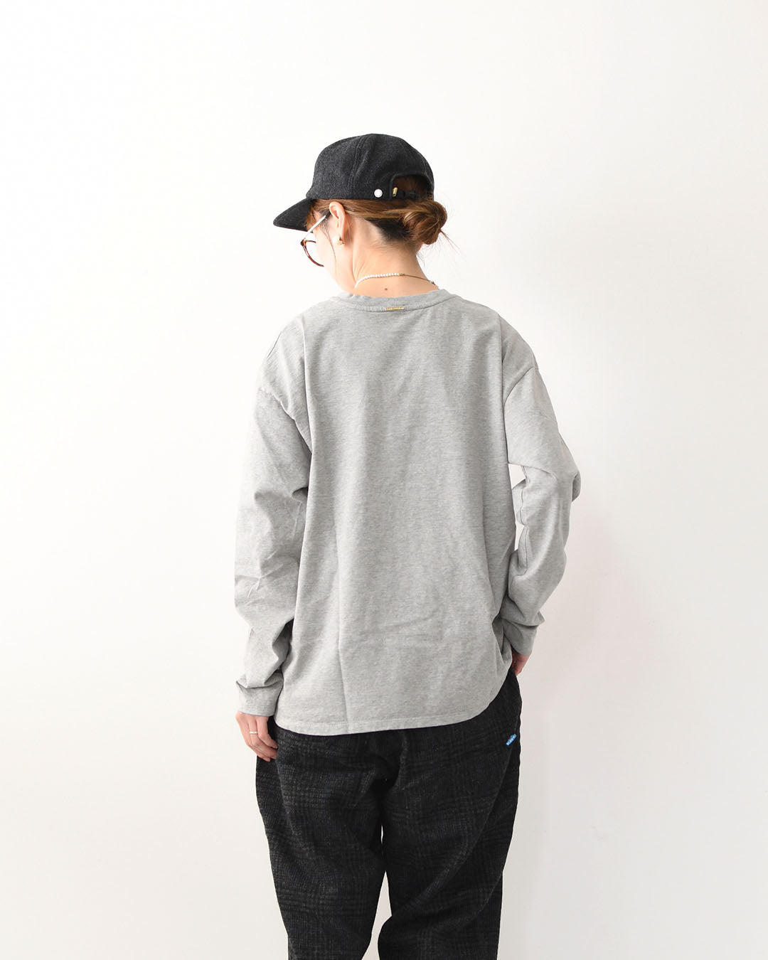 身体のラインを拾いにくい程よいサイズ感で、 一枚での着用はもちろん、シャツやカーディガンのインにも活躍。