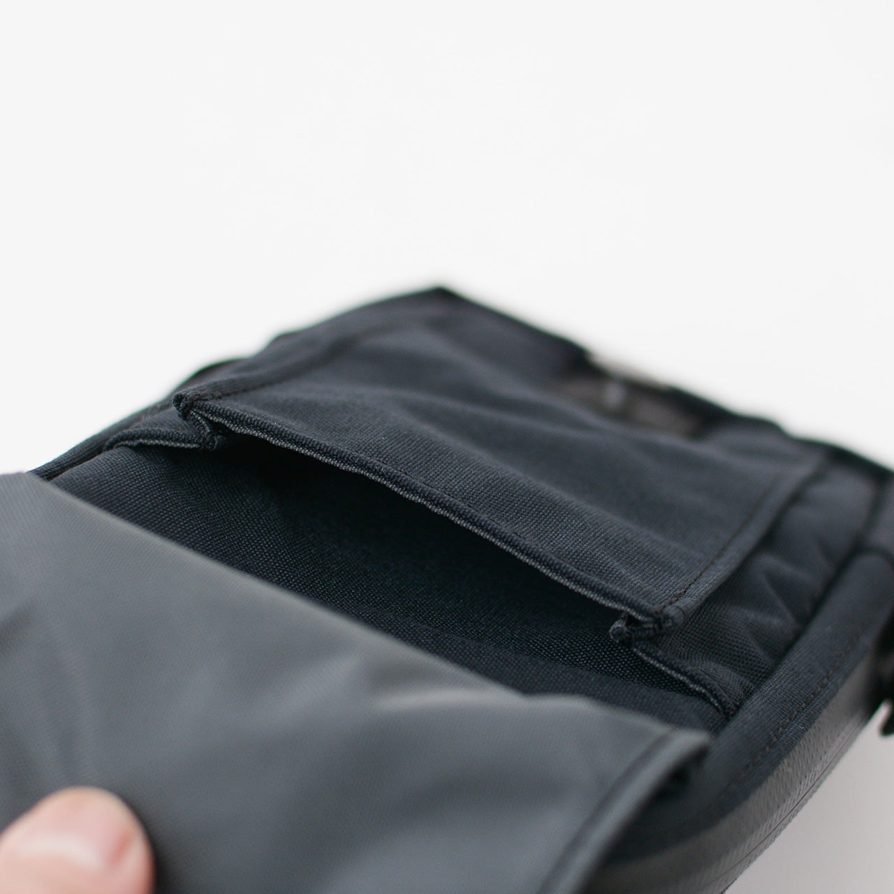 止水ジッパー採用のメインコンパートメントは、スマートフォンとバッテリーやケーブルを分けて収納できるスリーブを装備。