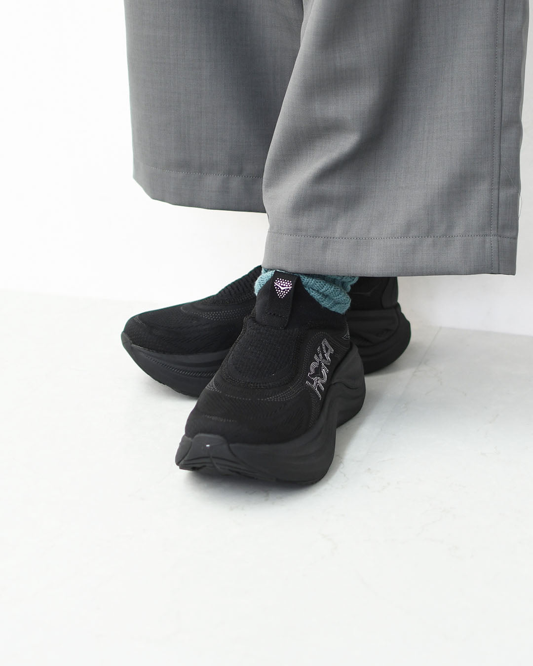 伸縮性のある靴下のようなアッパーが足にやさしくフィットし、脱ぎ履きのしやすさも魅力です。