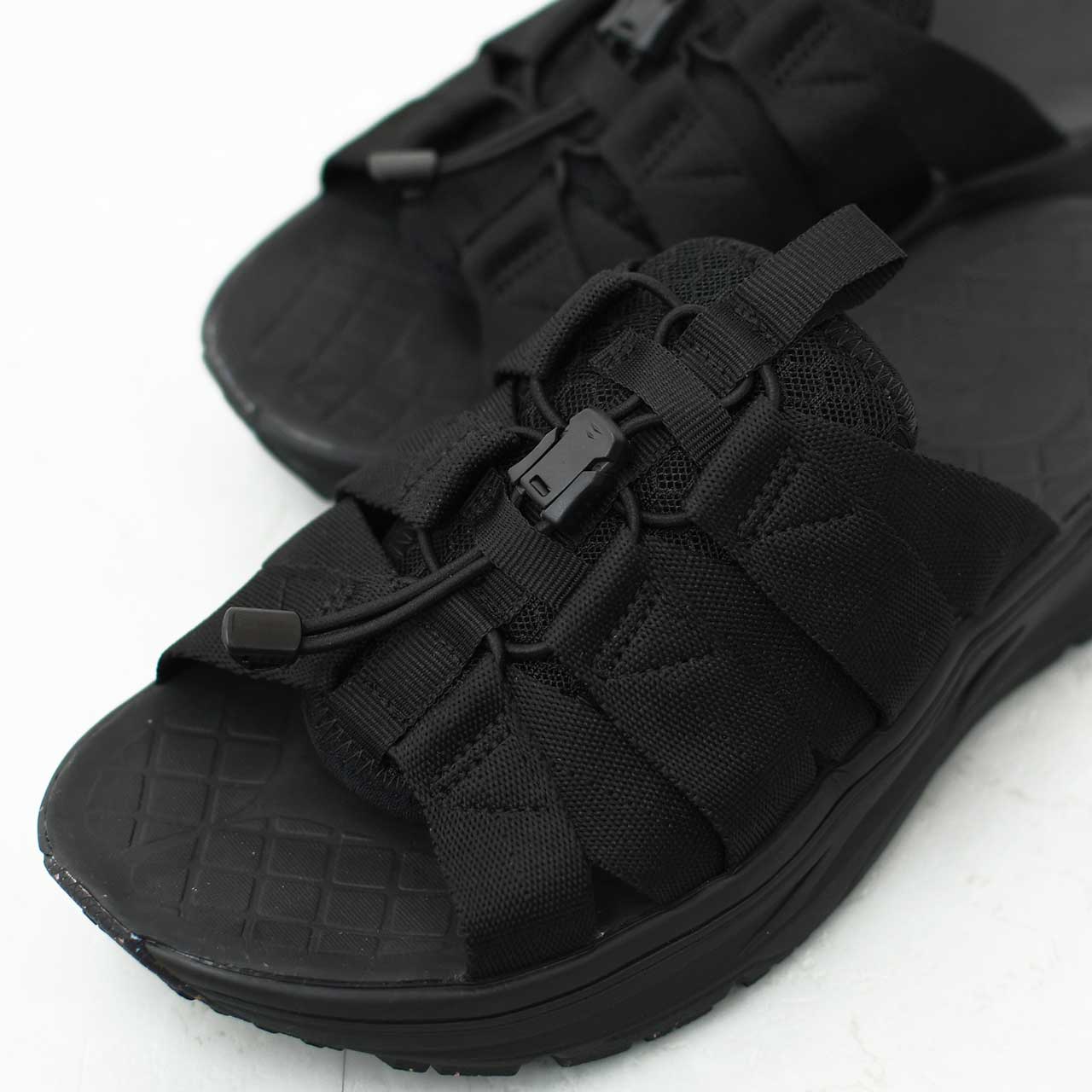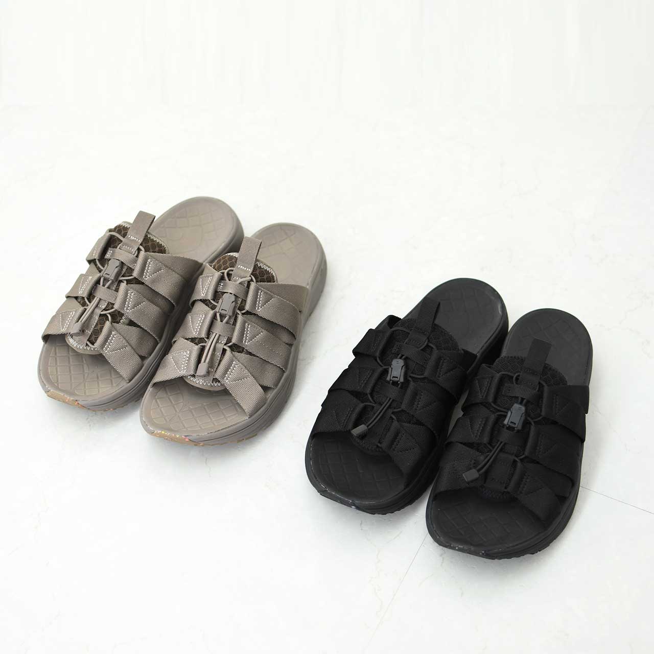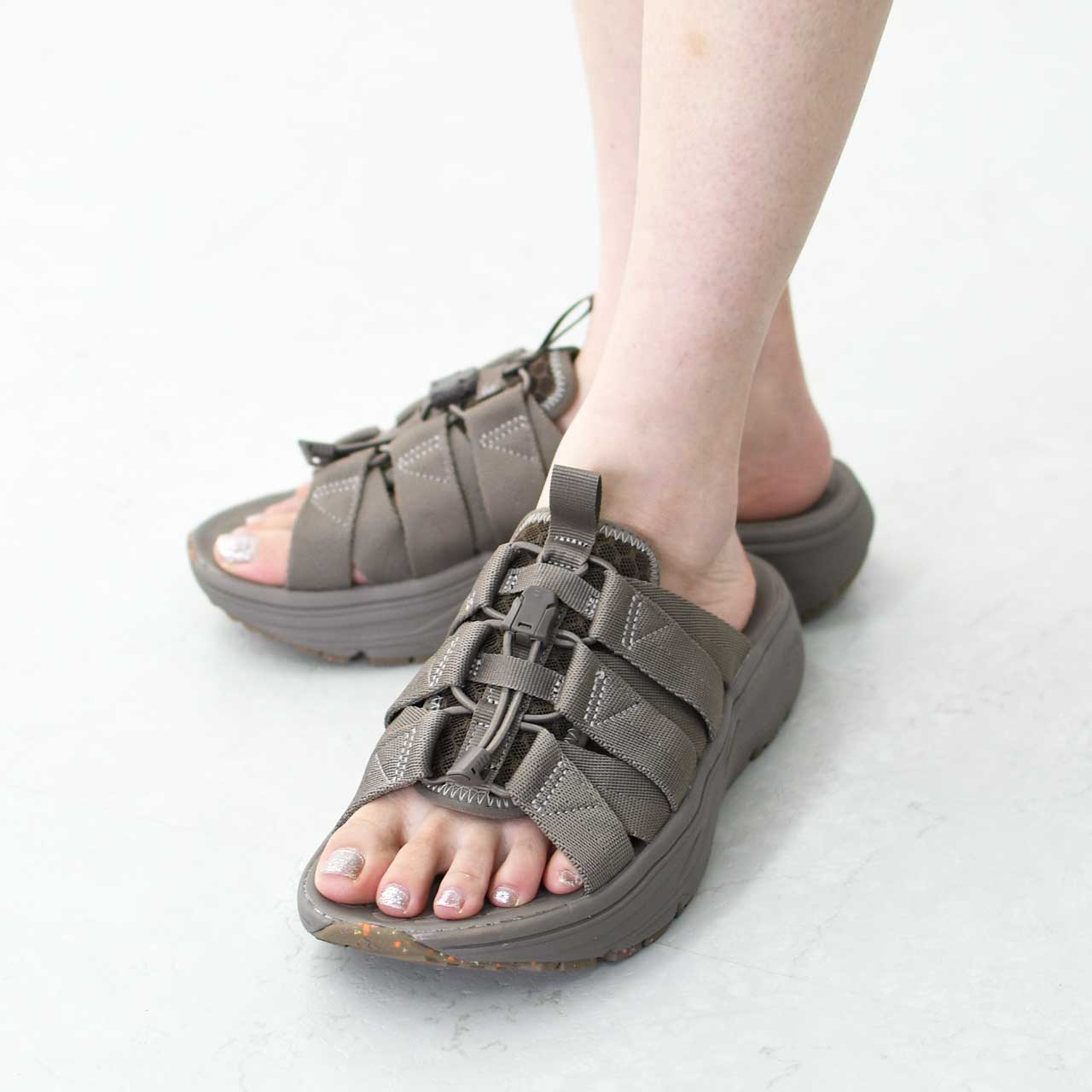 スライドタイプの Wadu( ワドゥ) は甲部分を 6 本のナイロンテープをゴム紐で結んでいるので、
