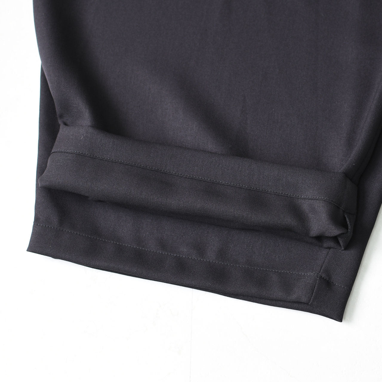 膝にタックを入れた立体構造が、シンプルながらも動きのあるシルエットを演出。