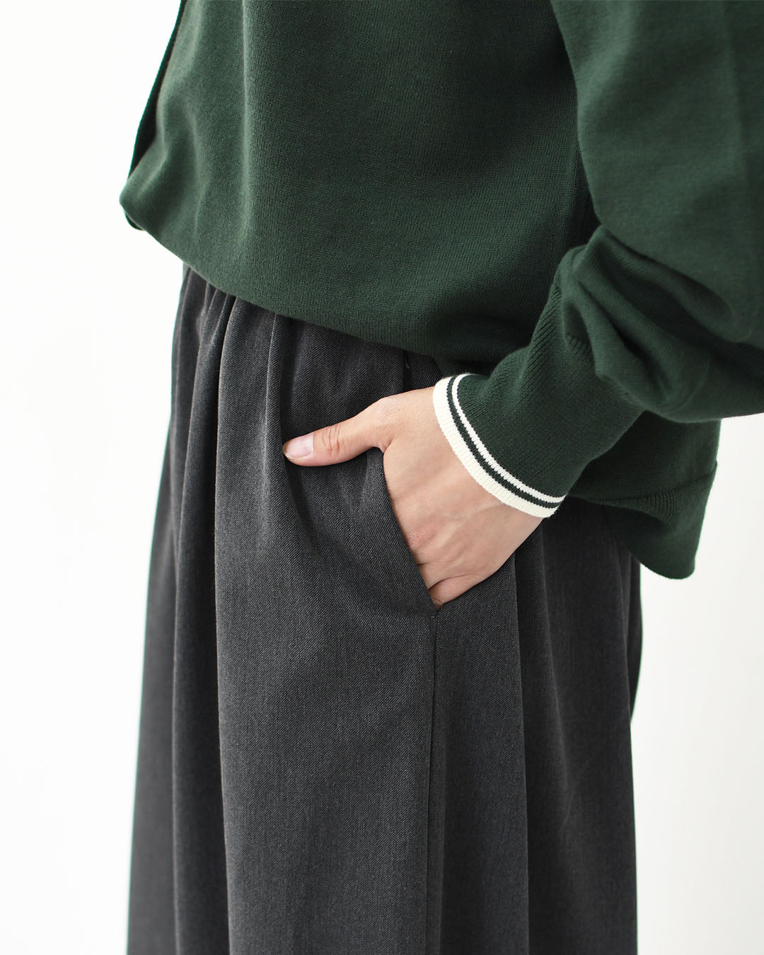 ウールライクのさらりとした質感で、シワになりにくい素材を使用したT/Rワイドイージーパンツです。