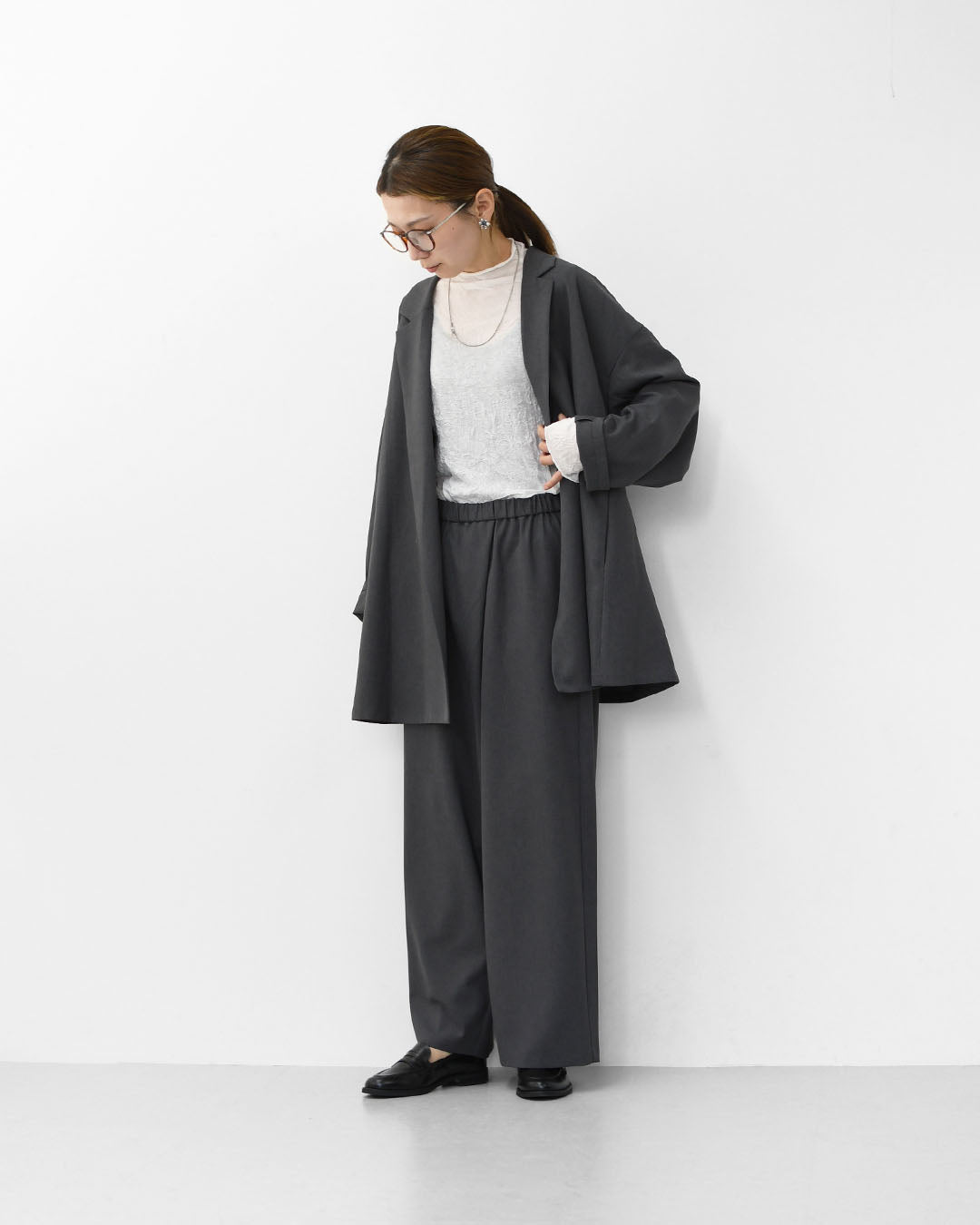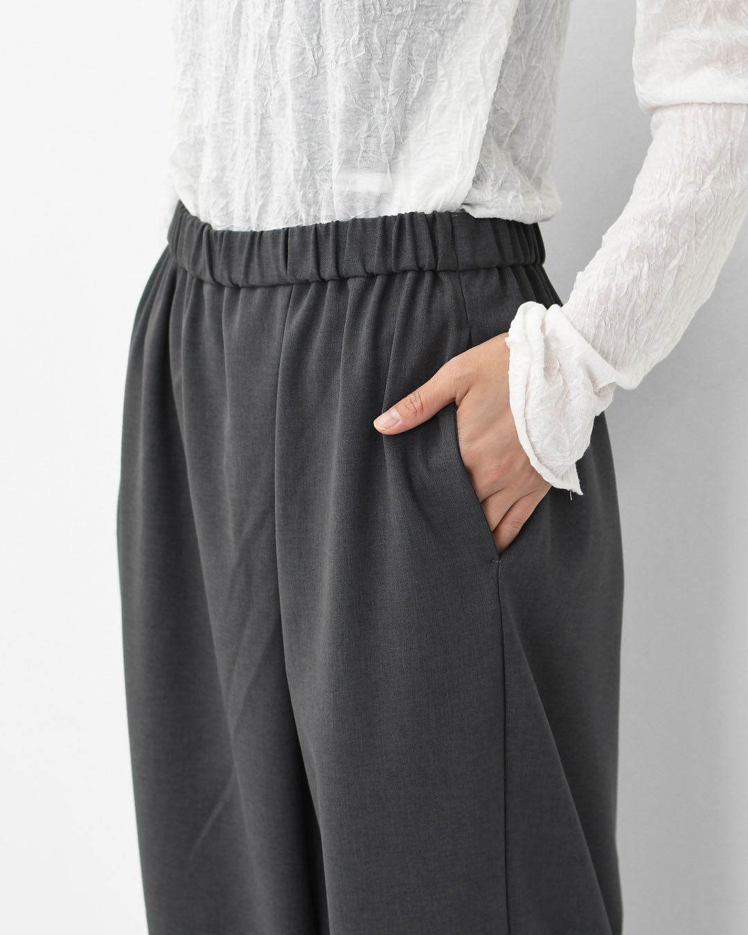 ウールライクな質感で、秋冬商品にもコーディネートしやすいラップライクイージーパンツです。