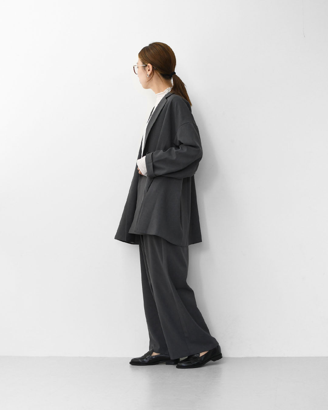 ほどよく広いパンツ幅になっておりサラッとした生地感で上品な雰囲気も演出。