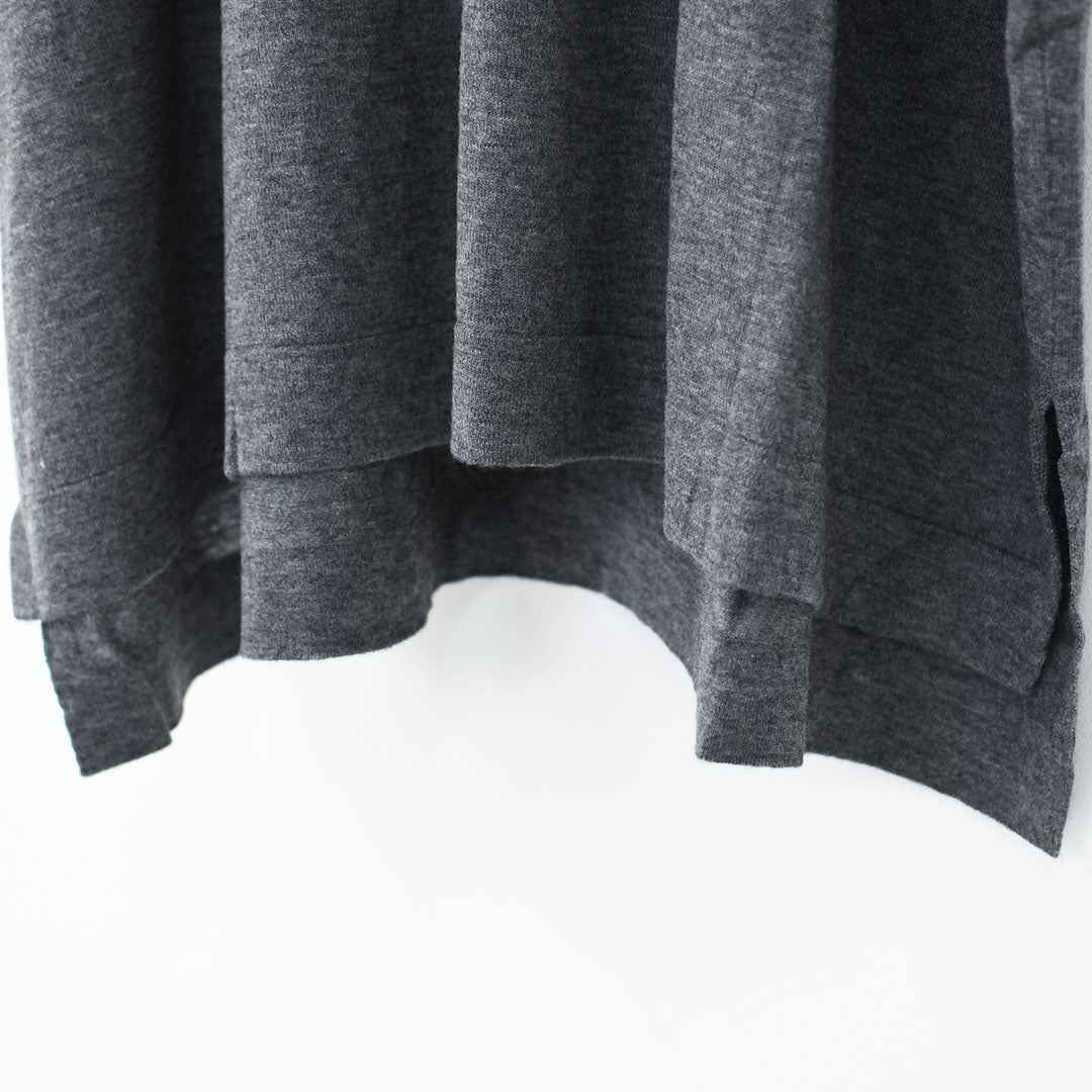 サイドスリットと前後差のあるヘムで重ね着での着こなしにお勧めの1枚。