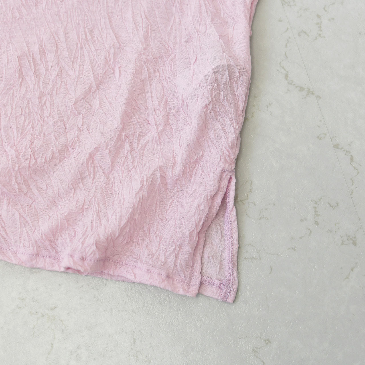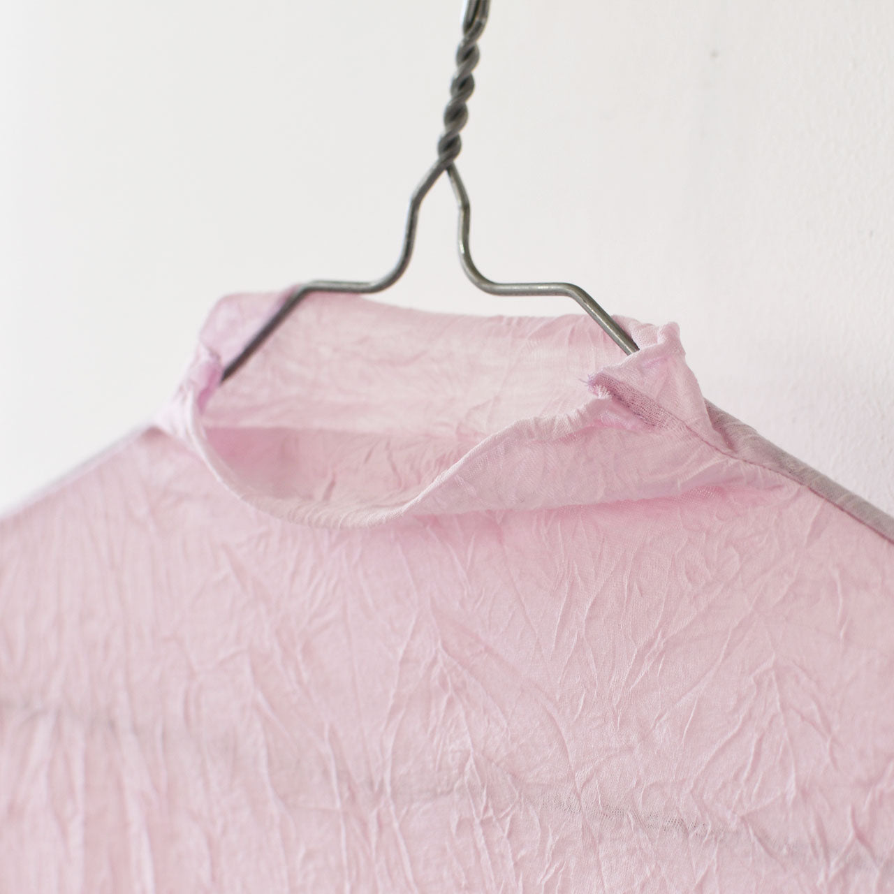 しわ感のある素材が肌にさらりと馴染み、甘くなりすぎず上品な仕上がりに。